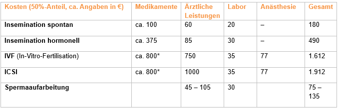 - 3 Inseminationszyklen mit hormoneller Stimulation, z. B. Gonal F, Puregon, Menogon